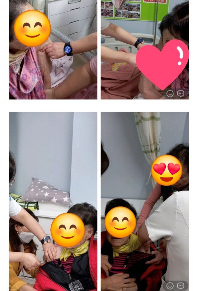 안녕하세요. 올 겨울 안전하게 보내기 위해 모든 수급자와 종사자 모두 예방 접종을 하였습니다. 11월 5일 수급자 어르신 (독감예방접종과 코로나백신 접종)실시를 하였습니다. 무탈하게 올 한 해 어르신들 모두 건강하게 잘지내시길 바래봅니다